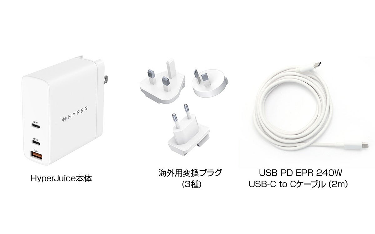株式会社ロア・インターナショナル(所在地:東京都新宿区、代表取締役社長:Ally Won)は、HYPER(ハイパー)より、1ポート140W出力(PD3.1)に対応した「HyperJuice 140W PD 3.1 電源アダプタ」を発売しました。高い電力効率・小型・安定出力を実現した次世代の高出力USB充電器です。USB-Cが2ポート、USB-Aが1ポートの複数ポートタイプです。