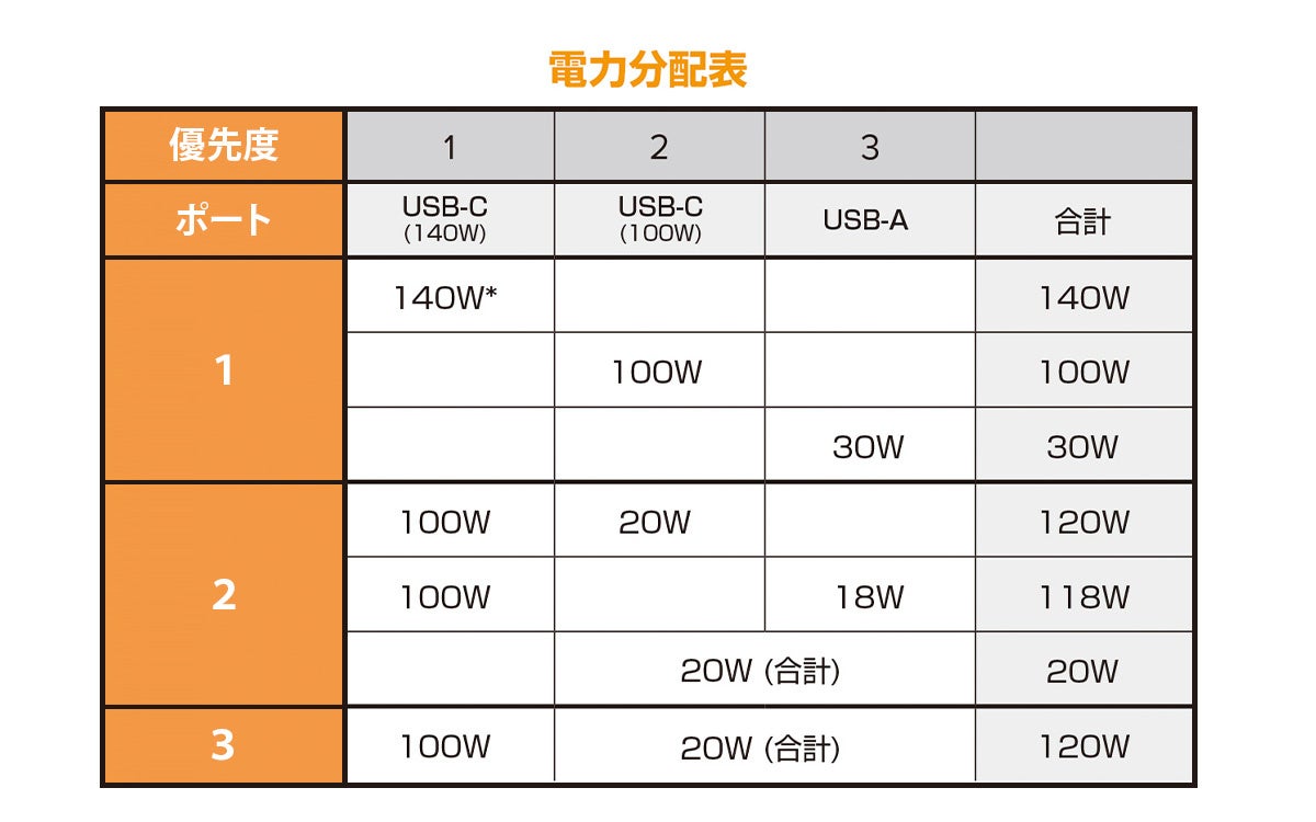 各デバイスに合わせた電力を自動分配。出力可能な範囲内で、最適な電力を割り振ります。