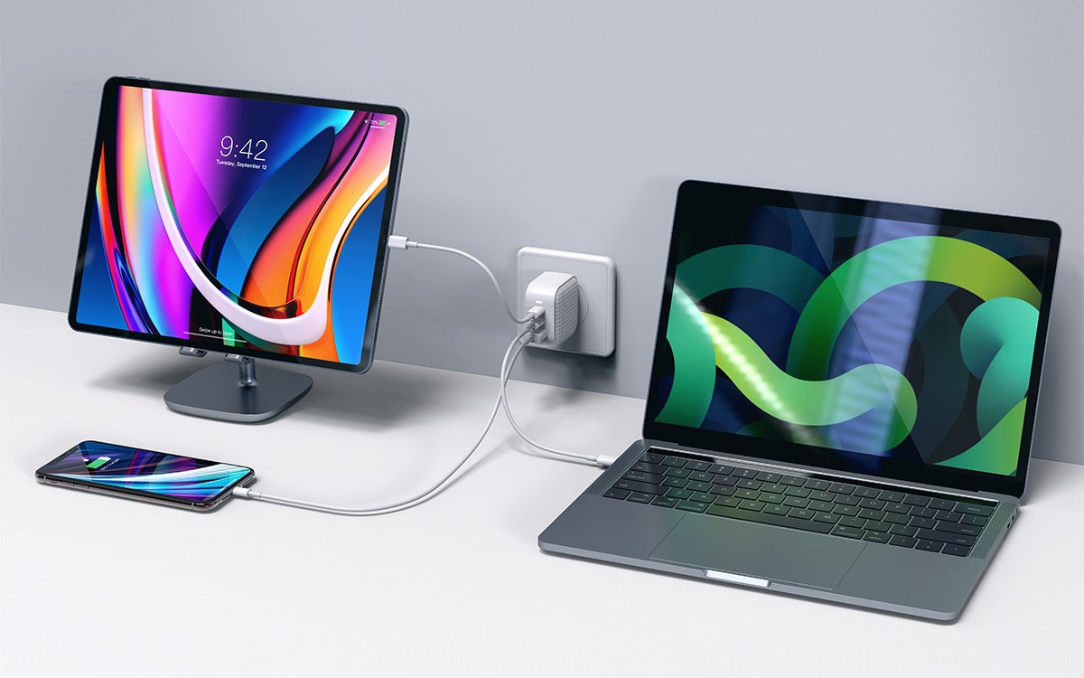 最先端のGaNテクノロジーによる100WのUSB-C Power Deliveryポートを4つ搭載した、合計最大245Wの高出力電源アダプタです。高電力で充電が必要なMacBook Proやその他ノートPC、タブレットなど最大4台まで充電が可能です。PCやモバイルデバイスのハイスペック化による充電パワー不足を解消します。ビジネス用途にも最適です。