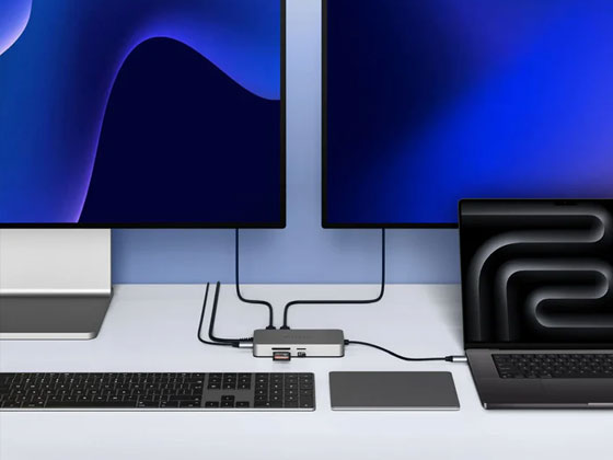 HyperDrive VIPER 10-in-2 USB-C ハブは、デュアルUSB-C入力端子を搭載し、デュアルHDMI出力(4K 60Hz対応)を含む10ポートの拡張ができるMacBook Pro/Air用USB-Cハブです。USB-C入力端子を分岐させることであらゆるUSB-Cデバイスにも対応可能。